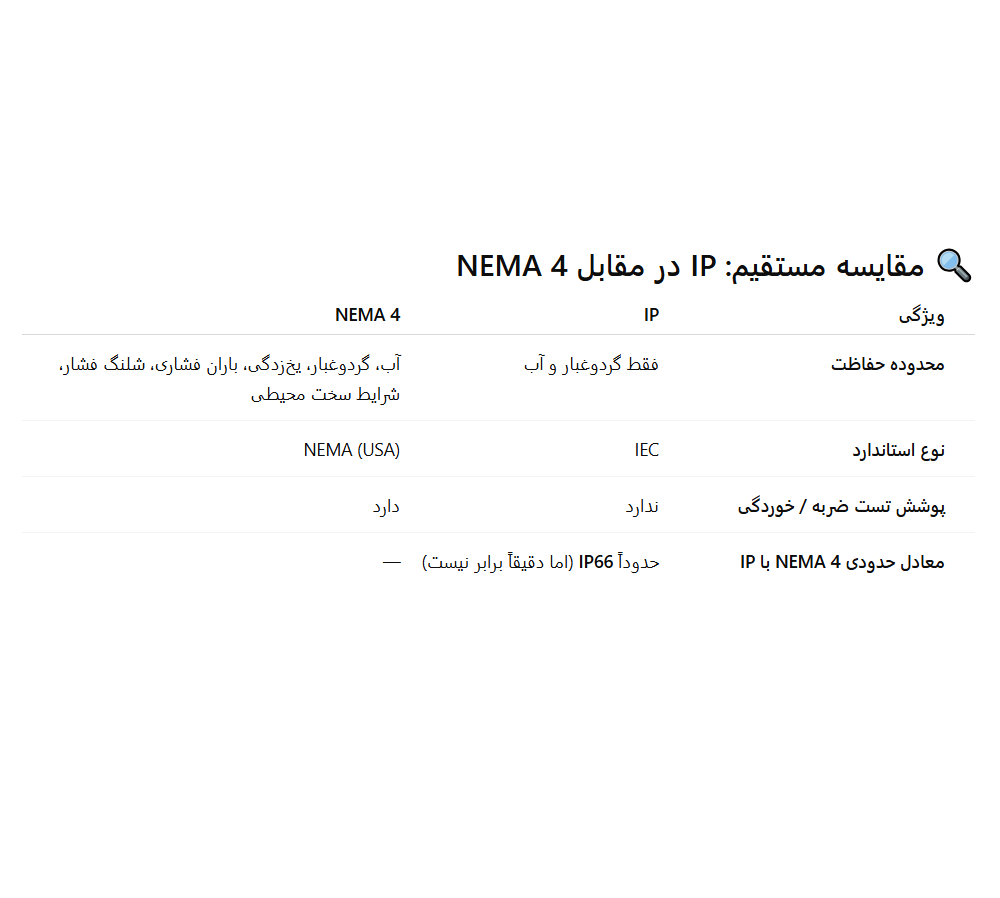 - درجه حفاظت NEMA 4 ( به کاتالوگ پیوست رجوع شود)