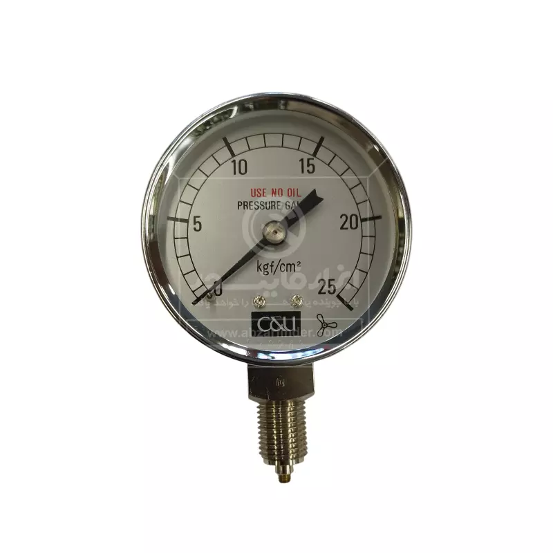 گیج فشار C & U مدل F28249 دستگاهی است که اختلاف فشار بین دو نقطه (معمولاً فشار سیال در سیستم و فشار مرجع که اغلب فشار اتمسفر است) را اندازه میگیرد و به صورت یک مقدار عددی روی صفحه نمایش میدهد، در واقع گیجفشار این قابلیت را دارد که اندازه فشار سیال ورودی را تشخیص بدهد؛ و آن را بر حسب کمیتهای فشار روی یک صفحهی کنتور عقربه ای به نمایش بگذارد. در طراحی گیج فشارها از یک سنسور استفاده میشود. سنسورها بخشی از مانومتر هستند که تحت تاثیر فشار قرار میگیرند؛ و وقتی که این سنسور تحت تاثیر فشار قرار گرفت، در آن یک تغییر حالت فیزیکی ایجاد میشود. این تغییر حالتی که در سنسور ایجاد شده است از طریق چرخ دندههایی به یک نمایشگر منتقل میشود. و در نهایت میزان فشار بر روی یک صفحه نشان داده میشود.