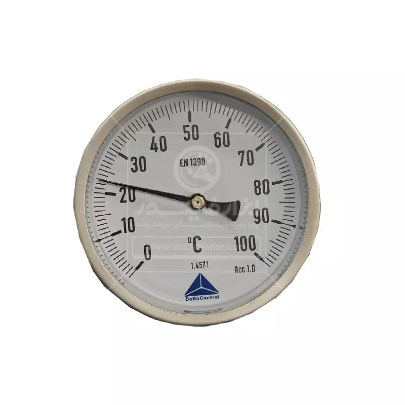 ترمومتر اتصال از پشت دلتا کنترل با طول سنسور 160میلی متر یک ترمومتر عقربهای صنعتی با اتصال از پشت (Centre Back Stem) است، یعنی صفحهی گردِ نمایش از جلو دیده میشود، اما میله/سنسور از پشتِ بدنه وارد خط یا مخزن میشود. این مدلها برای اندازهگیری دمای سیالات صنعتی (مثل آب، بخار کمفشار، روغن، هوا/گازها و …) طراحی میشوند، جاهایی که برق و باتری نمیخواهید یا ندارید، ابزار باید ساده، مقاوم و همیشهکار باشد و یا خواندن دما از روی عقربه و صفحه کافی باشد. ویژگی کلیدی نسخهی «اتصال از پشت» این است که وقتی ترمومتر روی دیوار مخزن یا روی لوله از روبهرو نصب میشود، صفحه درست رو به اپراتور میایستد و میله از پشت وارد سیستم میشود. این ترمومتر معمولاً از نوع بیمتال (Bimetal) است. داخل بدنه یک قطعهی فلزی از دو فلز متفاوت وجود دارد که به هم چسبیدهاند، وقتی دما بالا/پایین میرود، هر فلز با نرخ متفاوتی منبسط/منقبض میشود، این اختلاف انبساط باعث پیچش یا حرکت مکانیکی آن قطعه میشود و در نهایت این حرکت با یک مکانیزم انتقال (چرخدنده/اهرم) به عقربه میرسد و عقربه روی صفحه عدد دما را نشان میدهد، در واقع بدون نیاز به برق، دما را مستقیم و قابلاعتماد نشان میدهد. این ترمومتر چون مکانیکی است، بهاندازهی سنسور دیجیتالِ کالیبرهشده “فوقدقیق” نیست، اما برای کنترلهای صنعتی عالی است. عبارت EN 1390 روی صفحه یعنی مطابق استاندارد اروپایی مربوط به ترمومترهای بیمتال/صفحهای می باشد.