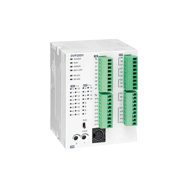 PLC دلتا مدل DVP28SV11T2،با داشتن 16 ورودی و 12 خروجی دیجیتال از قدرتمندترین پی ال سی های DVP مدل اسلیم محسوب میشوند .این پی ال سی با داشتن RTC داخلی ؛ظرفیت برنامه نویسی 30 کیلواستپی و داشتن ورودی سرعت بالا 100 کیلوهرتزی و داشتن 4 خروجی 200KHZ برای راه اندازی سرو؛ قدرتمندترین پی ال سی های سریDVP مدل اسلیم محسوب میشوند.در پروژه های خاص و پیچیده که از مدل های اسلیم سری DVP ؛قرار به استفاده باشد انتخاب پی ال سی دلتا DVP28SV11T2،بهترین انتخاب میباشد.