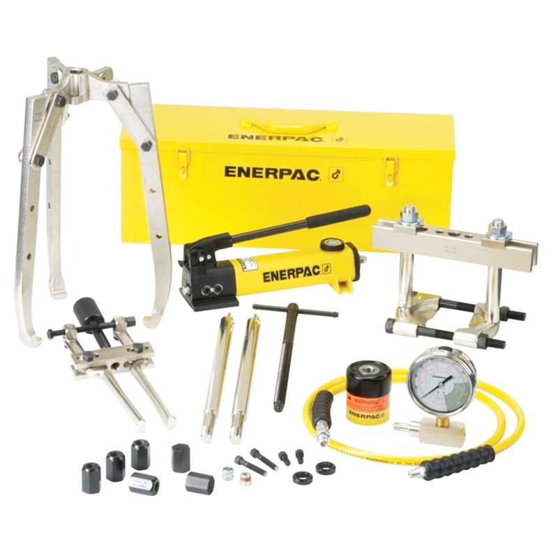 ست پولی کش بلبلرینگ کش 13 تن انرپك BHP1752، مجموعه ای از ابزارهای مورد نیاز برای برای کشش، جابجایی، بلند کردن و تراز کردن قطعات سنگین، پولی و جدا کردن بلبرینگ، برداشتن و نصب چرخ دنده، قرقره و بوش ها می باشد. ست پولی کش هیدرولیک چند منظوره انرپك مدل BHP1752 توانایی تحمل بارهای سنگین با استفاده از پمپ هیدرولیک را دارد. مجموعه این ست شامل پمپ، سیلندر، شیلنگ، کوپلینگ، گیج و پولی کش و بلبرینگ کش و بدنه تمام لوازم از جنس فولاد آبدیده بسیار محکم طراحی شده است. ست پولي كش 13 تن انرپك BHP1752 شامل مجموعههای کشنده گریپ و کشنده بلبرینگ متقاطع هستند که آنها را برای همه کارهای کشیدن و هل دادن در تعمیر و نگهداری مناسب میکند. مجموعههای کشنده از فولاد آهنگری شده برای عمر طولانی و قابلیت اطمینان ساخته شدهاند. همه این مجموعهها دارای میل لنگ سرعت و پیچ تنظیم هستند که به فکها اجازه میدهد قبل از استفاده از هیدرولیک، به سرعت به قطعه کار بسته شوند.