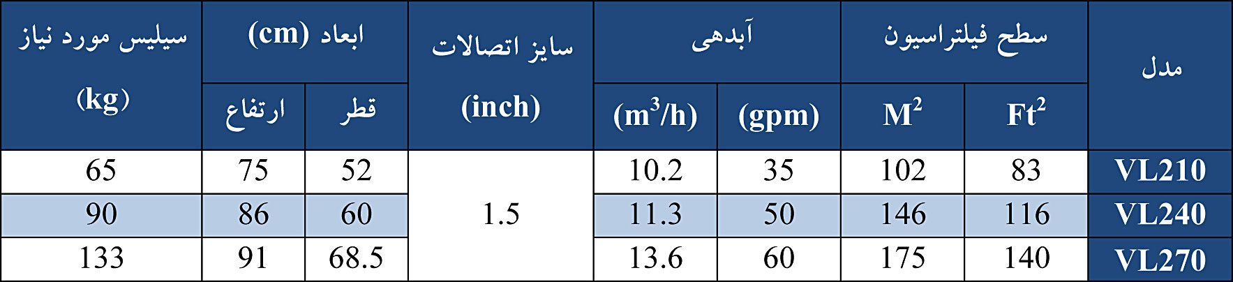 - مدل VL240 از نوع فیلترهای پایه سرخود می باشند.