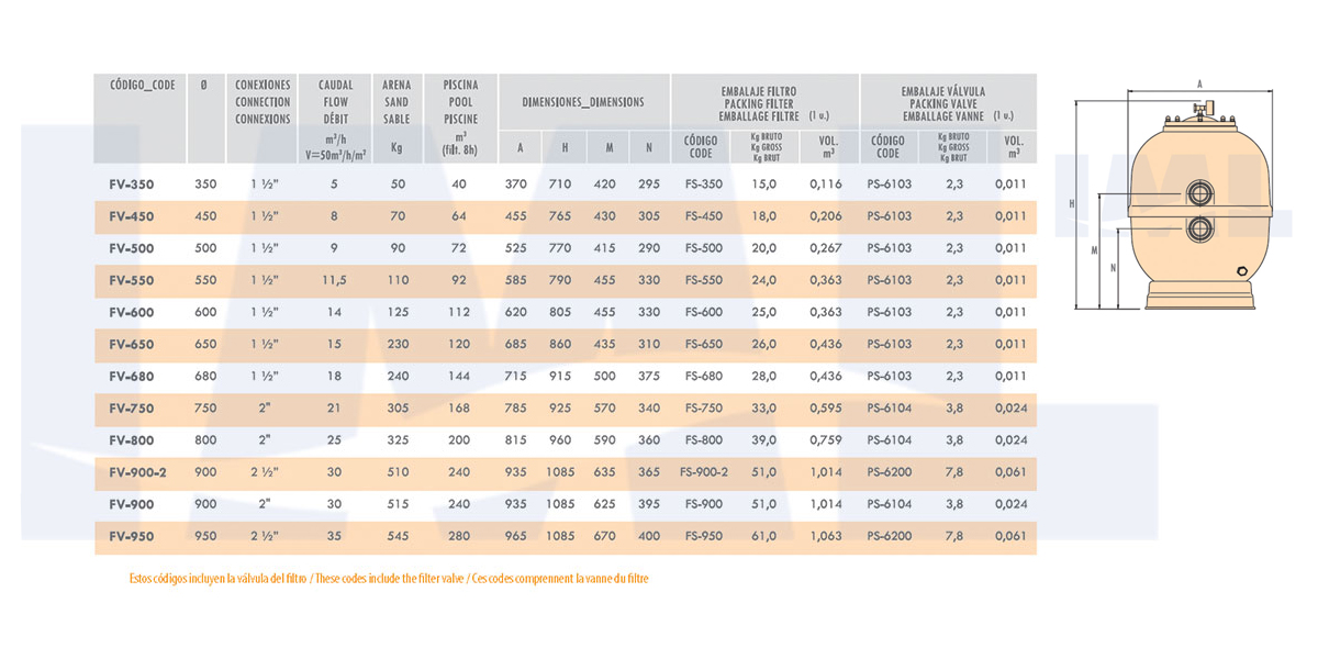 فیلتر شنی استخر IML سری LISBOA مدل (IML Sand Filter LISBOA-FV-650) FV-650 با آبدهی 15 متر مکعب مناسب برای استفاده در استخرهای سرپوشیده با حداکثر حجم 120 متر مکعب و استخرهای روباز با حداکثر حجم 60 متر مکعب میباشد.