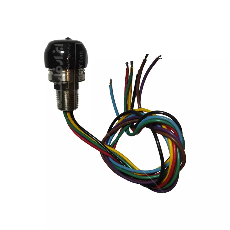 سوئیچ فشاری الکتریکی یک دکمه فشاری (push button) با سیمهای متعدد است که برای کنترل یا سوئیچینگ در یک سیستم صنعتی یا الکترونیکی استفاده میشود. دارای سیمهای رنگی متعدد برای اتصالات مختلف (مانند برق، سیگنال، زمین) است که نشاندهنده عملکرد چندگانه یا پیچیده آن است.