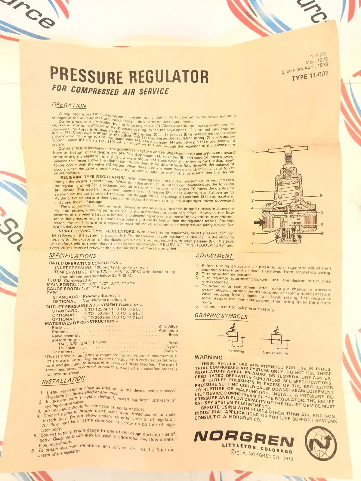 رگلاتور فشار نورگرن(Norgren) مدل 001-002-11