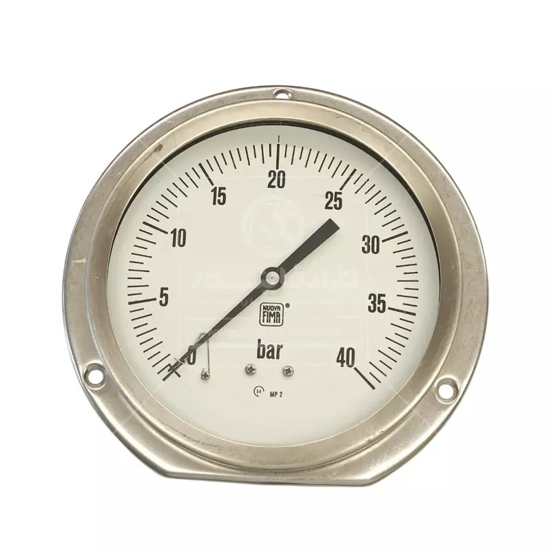 گیج فشار صفحه ۱۶ سانت برند نووا فیما یک ابزار اندازهگیری مکانیکی است که برای نمایش فشار سیالات (مایعات یا گازها) در سیستمهای صنعتی به کار میرود. این وسیله فشار واقعی سیال را گرفته و آن را به حرکت مکانیکی عقربه تبدیل میکند تا روی صفحه مدرج (در واحد bar، psi یا ...) نمایش داده شود.