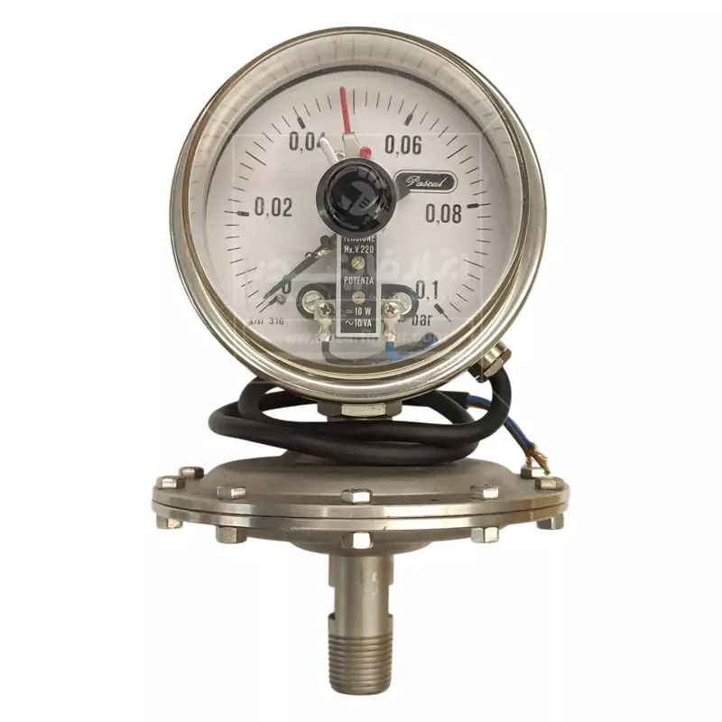 مانوستات دیافراگمی پاسکال رنج 0.1 بار ترکیبی از گیج فشار مکانیکی و سیستم سوئیچ الکتریکی است که معمولاً برای سیالات خورنده، لزج، آلوده یا کریستالشونده استفاده میشود. بخش دیافراگمی، فشار سیال را حس کرده و از ورود مستقیم آن به مکانیزم حساس داخلی جلوگیری میکند. کنتاکت الکتریکی نیز به شما امکان میدهد تا بر اساس مقدار فشار، آلارم، قطع یا وصل مدار الکتریکی را انجام دهید. عملکرد دستگاه به اینصورت می باشد که، دیافراگم در تماس غیرمستقیم با سیال قرار دارد. فشار سیال باعث تغییر شکل دیافراگم میشود و این تغییر مکان به یک مکانیزم فنری و سوئیچ الکتریکی منتقل میشود. وقتی فشار به مقدار تنظیمشده (Set Point) برسد، کنتاکت داخلی (micro switch) عمل کرده و مدار را قطع یا وصل میکند و پس از کاهش یا افزایش فشار از حد تعیینشده، سوئیچ دوباره به حالت اولیه بازمیگردد. این نوع عملکرد باعث کنترل خودکار تجهیزات الکتریکی در برابر افزایش یا کاهش فشار میشود. از ویژگی های مانوستات می توان به مناسب بودن برای فشارهای بسیار پایین، استفاده از دیافراگم استنلس استیل یا تفلونی برای مقاومت در برابر خوردگی و نصب آسان با اتصال دندهای یا فلنجی اشاره کرد.