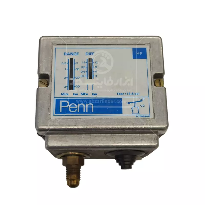 پرشر سوئیچ پن جانسون کنترل مدل P77AAW-9350 مثل یک ترمز ایمنی است که وقتی فشار سیستم خطرناک میشود، برق را قطع میکند تا دستگاه خراب نشود. این مدل از خانوادهی P77 است و بهطور مشخص برای کاربردهای فشار بالا در سیستمهای تبرید و تهویه طراحی شده است. پرشرسوئیچهای سری P77 برای قطع اضطراری/حفاظتی کمپرسور در فشار بالا، کنترل فن کندانسور یا کنترل ظرفیت در برخی مدارها و کاربردهای تبرید و HVAC با سیالات غیرخورنده کاربرد دارند. این مدل چون روی پنل جلویی HP دارد، معمولاً نقش اصلیاش حفاظت/محدودکنندگی فشار بالا است، یعنی اگر فشار کندانسور از حد تنظیمی بالاتر برود، کنتاکت را تغییر وضعیت میدهد تا سیستم خاموش شود یا آلارم بدهد. داخل دستگاه یک بلو (Bellows) و مکانیزم فنر-اهرم وجود دارد. فشار از طریق اتصال پایین وارد میشود و باعث حرکت بلو میگردد. این حرکت در یک فشار مشخص (Setpoint / Cut-out) باعث تریپ کردن میکروسوئیچ میشود، سپس با پایین آمدن فشار به اندازهی مقدار اختلاف (Differential)، دوباره به حالت قبل برمیگردد. سری P77 بهصورت استاندارد کنتاکت SPDT دارد. این قطعه برای محافظت تجهیزات فشار بالا است، تنظیم اشتباه میتواند باعث آسیب جدی به کمپرسور/کندانسور یا حتی خطرات ایمنی شود.