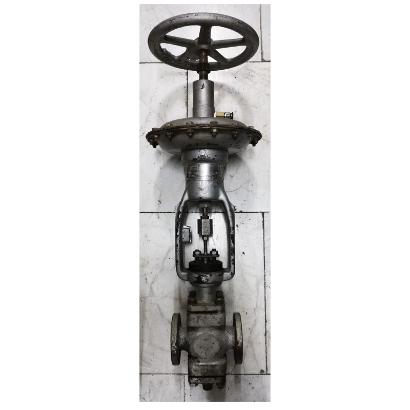 در این مدل شیر کنترل، نیروی محرک توسط یک عملگر (Actuator) پنوماتیک دیافراگمی تأمین میشود. با تغییر فشار هوای ورودی، دیافراگم تغییر شکل داده و محور ولو به سمت باز یا بسته شدن حرکت میکند. وجود پوزیشنر (Positioner) در بسیاری از این مدلها باعث افزایش دقت کنترل و حذف خطاهای ناشی از تغییرات فشار هوا میشود. پوزیشنر با دریافت سیگنال ورودی (معمولاً 4-20mA) موقعیت دقیق ولو را تنظیم میکند. مدل حاضر علاوه بر سیستم پنوماتیک، مجهز به هندویل دستی نیز هست. این ویژگی امکان تنظیم دستی ولو را در زمان قطع سیستم هوای فشرده فراهم میکند. هندویل دستی نقش پشتیبان ایفا کرده و در شرایط اضطراری یا هنگام سرویس و تعمیر، به اپراتور اجازه میدهد مدیریت جریان سیال را به صورت دستی انجام دهد.