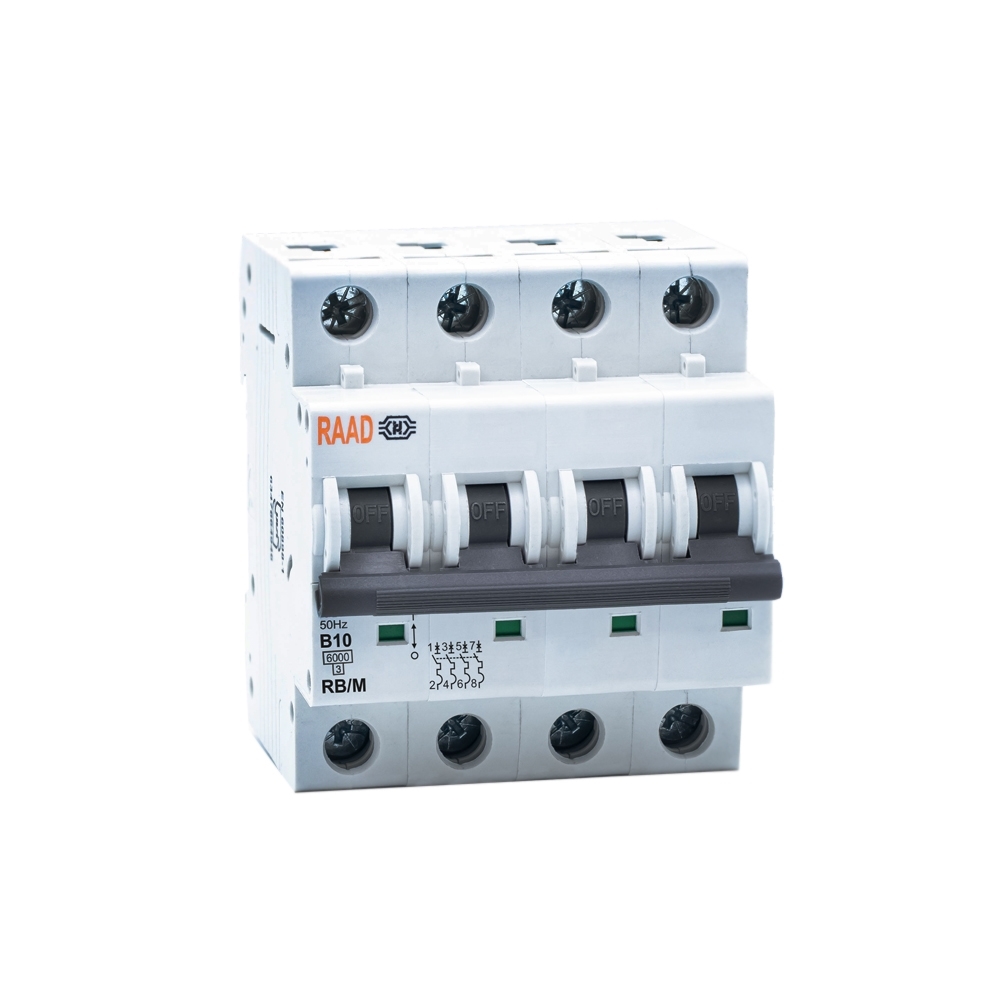 کلید مینیاتوری 4 پل 10 آمپر رعد (مدل RB/M-4P B10A-6kA)