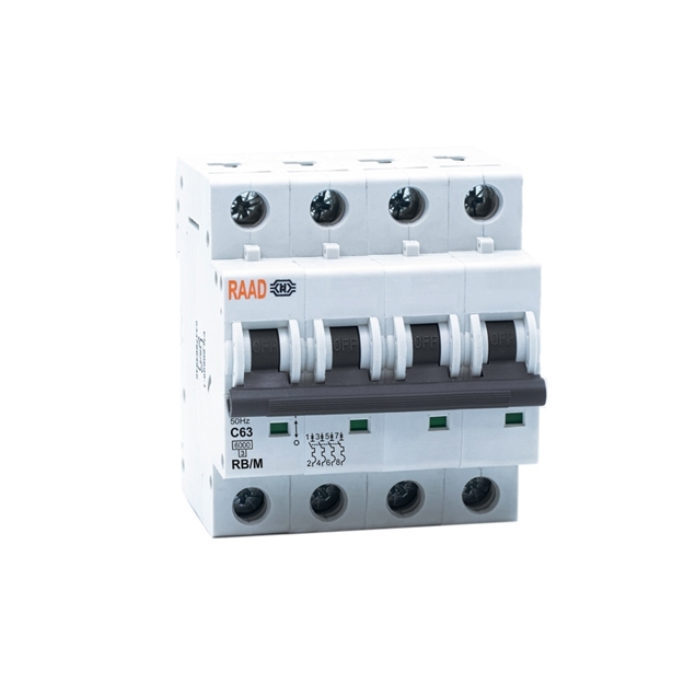 کلید مینیاتوری 4 پل 63 آمپر رعد (مدل RB/M-4P C63A-6kA)