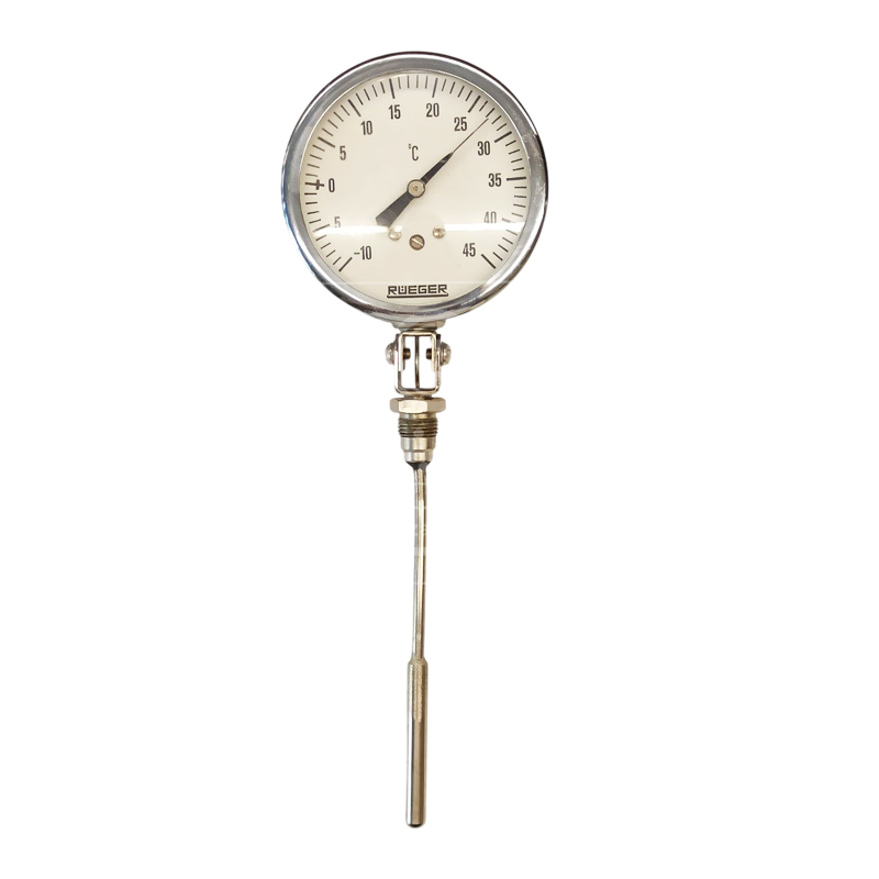 ترمومتر تاشو روگر بر پایه اصل انبساط حرارتی فلزات ساخته شده است، درون لولهی میلهای (Stem) یک نوار دو فلزی (Bimetal Strip) وجود دارد که از دو فلز با ضریب انبساط حرارتی متفاوت ساخته شده است، وقتی دما تغییر میکند یکی از فلزها بیشتر از دیگری منبسط یا منقبض میشود، این اختلاف انبساط باعث میشود که نوار دو فلزی خم یا پیچیده شودو حرکت مکانیکی این نوار از طریق سیستم انتقال مکانیکی (چرخدنده یا فنر مارپیچ) به عقربه منتقل شده و عقربه روی صفحه درجهبندیشده حرکت میکند در نتیجه تغییرات دما بهصورت عدد روی صفحه نمایش داده میشود.