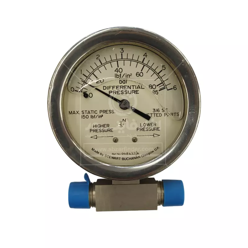 گیج اختلاف فشار روغنی صفحه 10 سانت برند استوارت دستگاهی است که اختلاف فشار بین دو نقطه (معمولاً فشار سیال در سیستم و فشار مرجع که اغلب فشار اتمسفر است) را اندازه میگیرد و به صورت یک مقدار عددی روی صفحه (کنتور عقربهای) نمایش میدهد. همانطور که روی گیج مشخص شده، دو ورودی به نامهای "فشار بالاتر" (HIGHER PRESSURE) و "فشار پایینتر" (LOWER PRESSURE) دارد. این ابزار به جای اندازهگیری فشار مطلق در یک نقطه، اختلاف فشار بین این دو ورودی را نشان میدهد. گیج اختلاف فشار استوارت دارای دو درگاه ورودی هستند که هر یک به یکی از خروجیهای تنظیم که فشار آن باید نظارت شود متصل است.