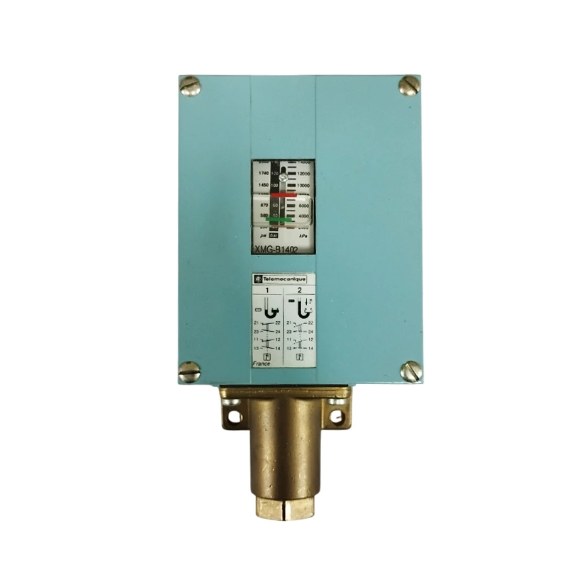 پرشرسوئیچ تله مکانیک مدل XMG-B1402 از سری Telemecanique / Schneider Electric است و حالتی قطعکننده مکانیکی فشار دارد. مدل B140 دیگر در تولید رسمی موجود نیست. این نوع سوئیچ با حد فشار بالا تعریف شده جفت میشود (PH و PB) تا وقتی فشار ورودی از حد بالا عبور کرد، عمل قطع انجام شود؛ و سپس هنگام افت فشار به مقدار پایینتر، مجدد وصل شود. مناسب برای آب، روغن هیدرولیک، بخار و هوا می باشد.